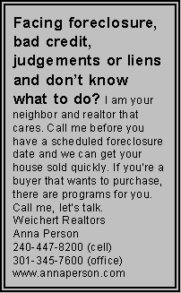 call Town hall @ 301-773-6401, Monday through Friday, nine to five.
